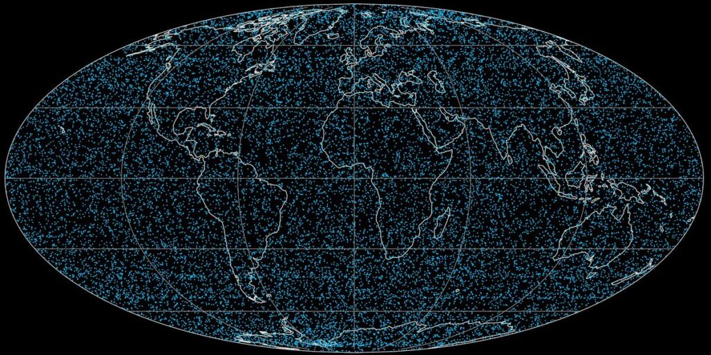 Canadian and American researchers simulated satellite tv for pc orbits in low Earth orbit—producing a metric, the CRASH Clock, that measures the variety of days earlier than collisions begin occurring if collision-avoidance maneuvers cease. Sarah Thiele, Skye R. Heiland, et al.